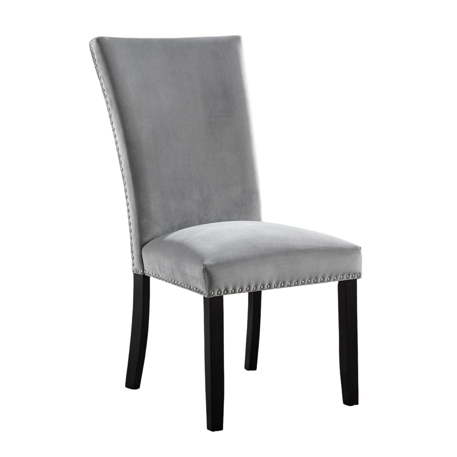 Attractive Set of 2pc Side Chairs Dining Room Furniture Gray Flannelette Seat Nailhead Trim Kitchen Breakfast
