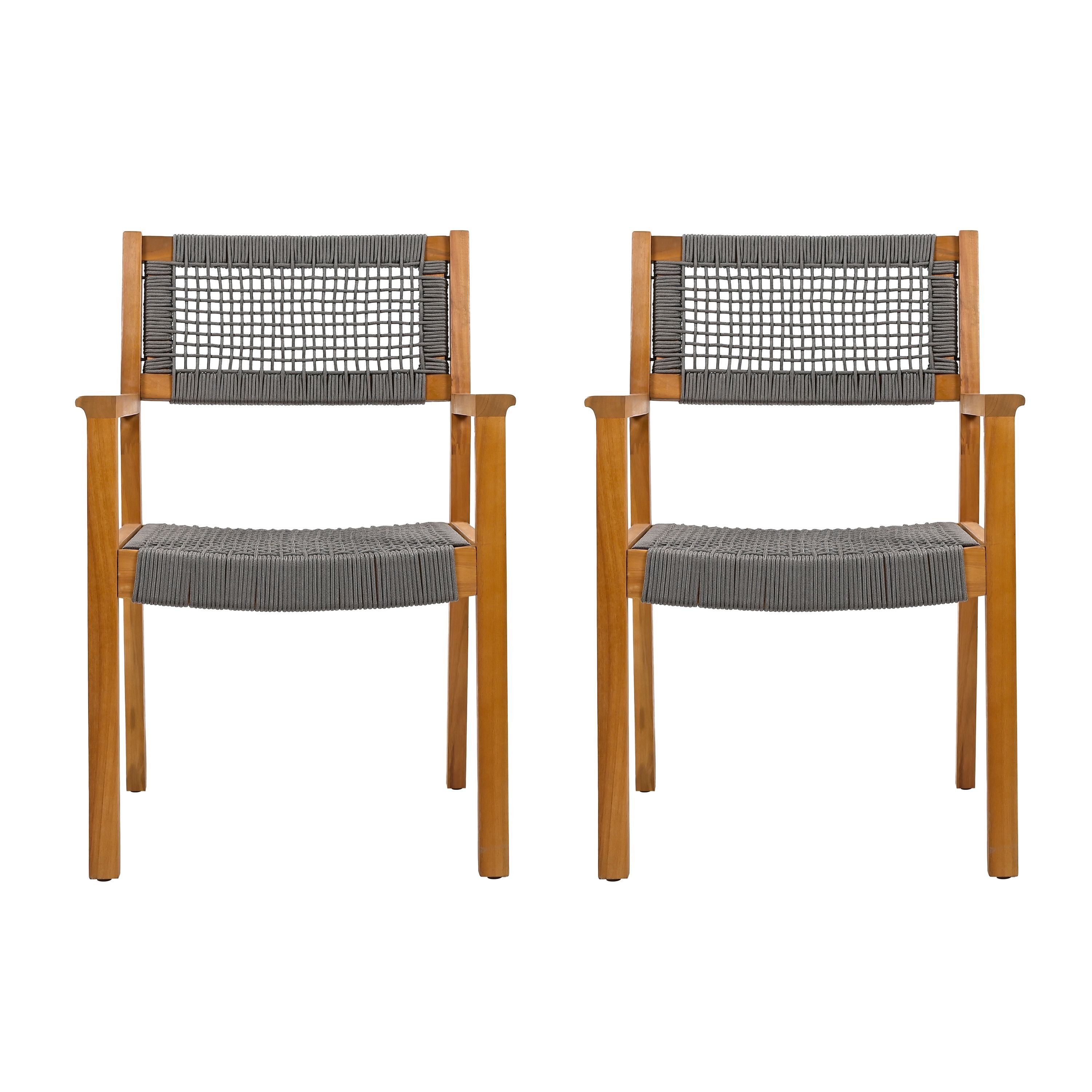 Set of 2: Product includes 2 Teak finish + Light Brown Rope chairs