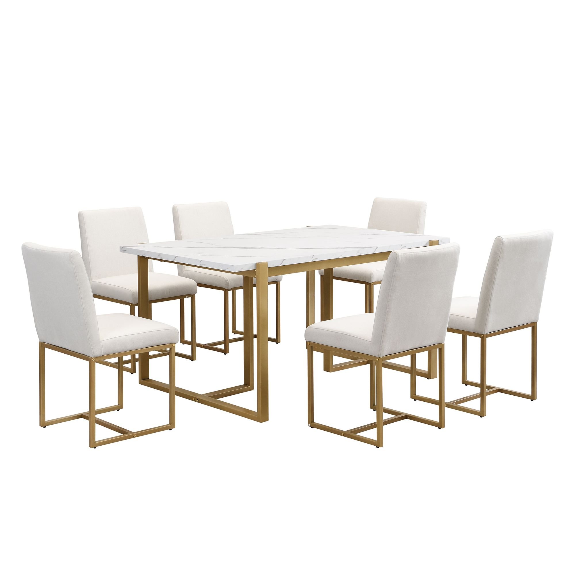 Modern Dining Table Set for 6 Faux Marble Kitchen Table Set with 6 Upholstered Dining Chairs, 7-Piece